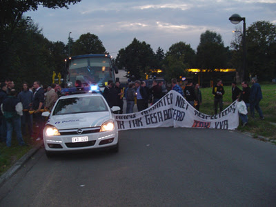 With a lot of enthousiasm, Flemish lionflags, and clearstrong slogans such as "FDF, fuck off!", we tried to put a Flemish stample on this provoking festivities giving the adversaries the message that Flandre will never let annexate any of their terrorities.